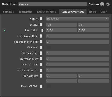 - Override an upstream camera’s parameters, or preempt the downstream render options, without modifying the associated nodes.
