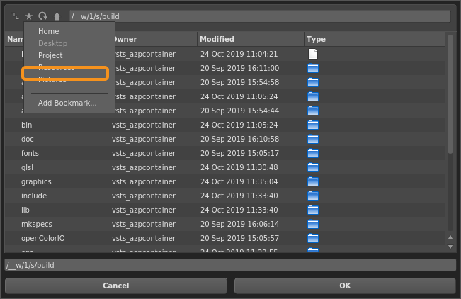 That’s all we need to add a default bookmark to Gaffer’s file browsers. Try testing the config: