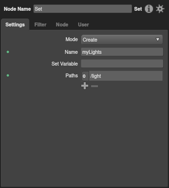 To link a light by location, simply add the light’s full location to the set expression. No additional node is needed.