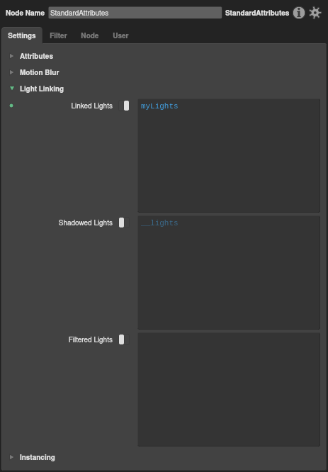 In a graph, in order to actually link a light to an object, you must connect a StandardAttributes node downstream of the object, filter for the object’s location, and then add a set expression to the Linked Lights plug.