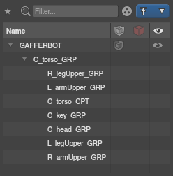 /group/GAFFERBOT/C_torso_GRP/C_head_GRP/C_head_CPT/*_ear*. The filter will now match the left and the right ears.