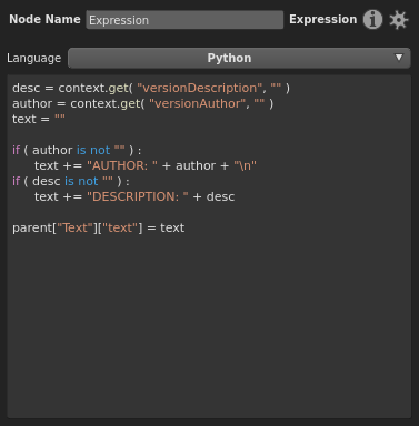 All Context Variables reside inside their Contexts, and are assignable. Any Context Variable present in a node’s Context during processing can have its value expanded in an Expression node, or string plug with string substitution syntax.