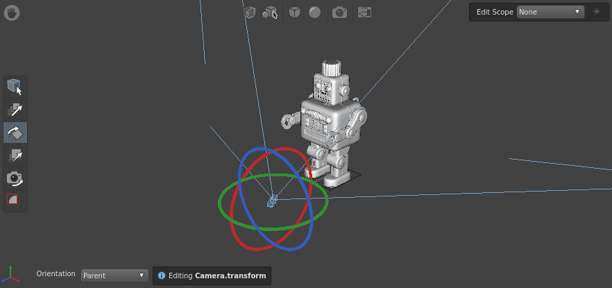 Next, you should reposition the camera so that it frames Gaffy. You can accomplish this using the built-in 3D manipulation tools in the Viewer.