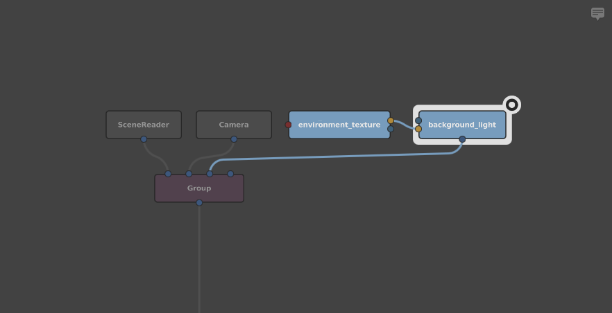 Connect the background_light node’s out plug to the Group node’s in2 plug.