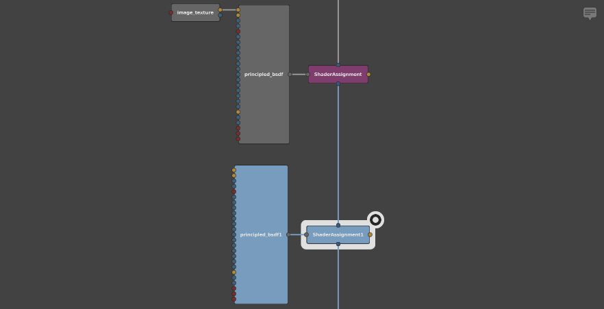Select the principled_bsdf1 node and create another ShaderAssignment node.