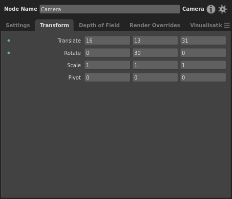 For more precise positioning and rotation, you can set the Translate and Rotate values in the Transform tab of the Node Editor: