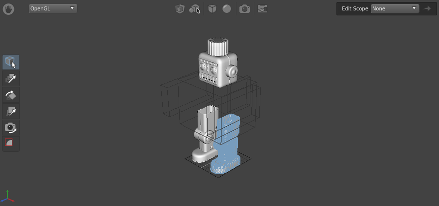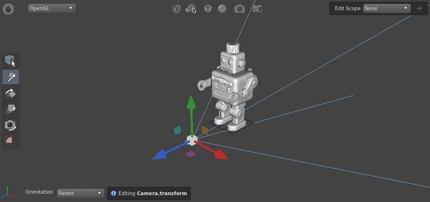 Next, you should reposition the camera so that it frames Gaffy. You can accomplish this using the built-in 3D manipulation tools in the Viewer.