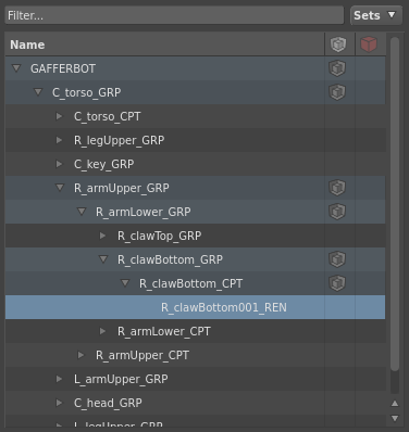Sets are collections of paths specifying a subset of locations within the scene. They are typically used to specify which locations a node acts upon. Gaffer automatically maintains a set containing all lights and a set containing all cameras. Users can create arbitrary custom sets of their own.