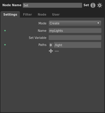 To link a light by location, simply add the light’s full location to the set expression. No additional node is needed.
