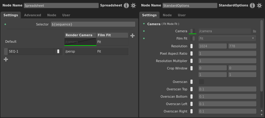 In production environments, spreadsheets are particularly effective at managing multi-render and multi-shot graphs while keeping them simple and easy to maintain. In a multi-shot rendering graph, a common temptation is to branch the graph, with separate render options nodes for each shot. But to save space and complexity, you could instead use a single branch and vary the node with a Spreadsheet node.