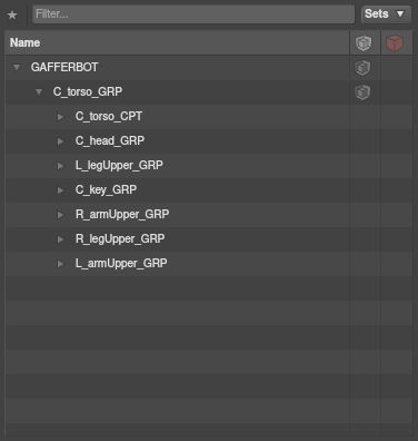 Further, Gaffer uses locations in the scene hierarchy to selectively render the objects (geometry, cameras) you need: in the Viewer, the objects of expanded locations will show, while the objects of collapsed locations will only appear as a bounding box. This on-demand object loading allows Gaffer to handle highly complex scenes. In your current node graph, only Gaffy’s bounding box is visible in the Viewer.