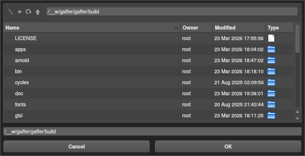 That’s all we need to add a default bookmark to Gaffer’s file browsers. Try testing the config: