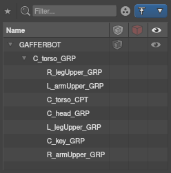 /group/GAFFERBOT/C_torso_GRP/C_head_GRP/C_head_CPT/*_ear*. The filter will now match the left and the right ears.