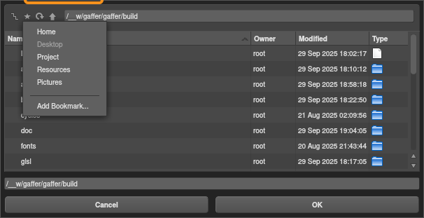 That’s all we need to add a default bookmark to Gaffer’s file browsers. Try testing the config: