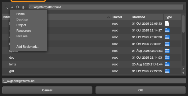 That’s all we need to add a default bookmark to Gaffer’s file browsers. Try testing the config: