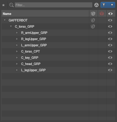/group/GAFFERBOT/C_torso_GRP/C_head_GRP/C_head_CPT/*_ear*. The filter will now match the left and the right ears.